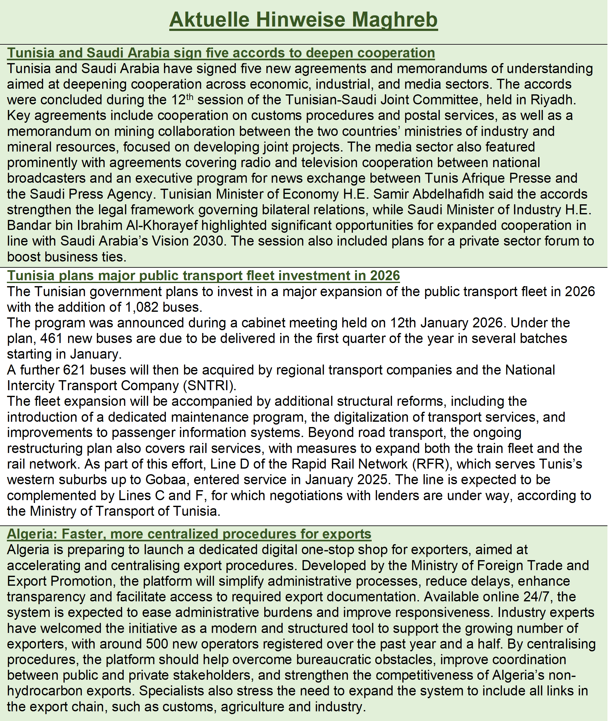 - "Unterstützung deutscher Unternehmen bei Ausbildungsmaßnahmen in Ägypten, Marokko und Tunesien" 17.04.2023